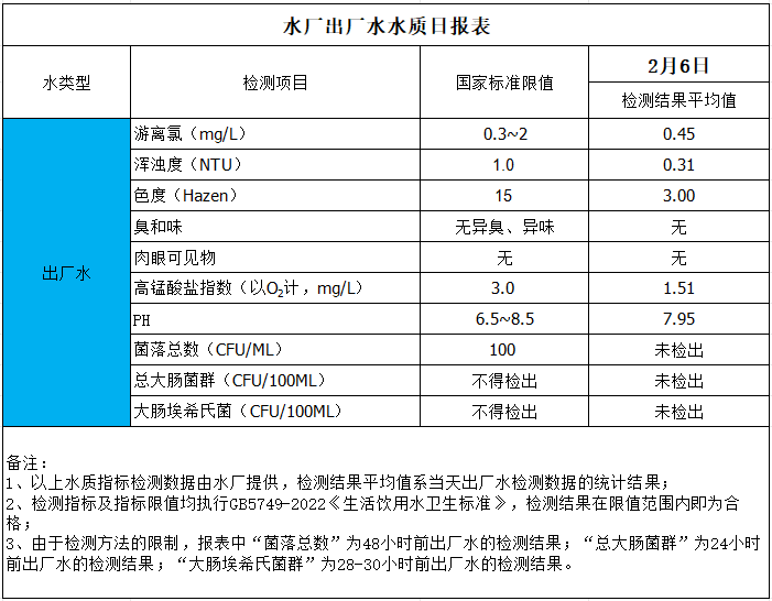 水廠出廠水水質(zhì)日報(bào)表(2025-2-6)