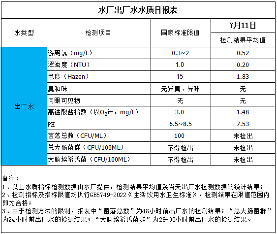 水廠出廠水水質日報表(2025-7-11)
