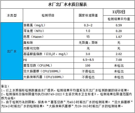 水廠出廠水水質日報表(2025-11-2)
