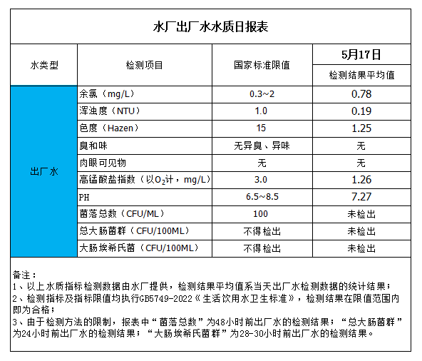 水廠出廠水水質日報表(2023-5-17)