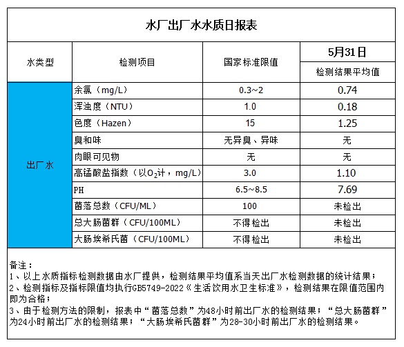 水廠出廠水水質日報表(2023-5-31)