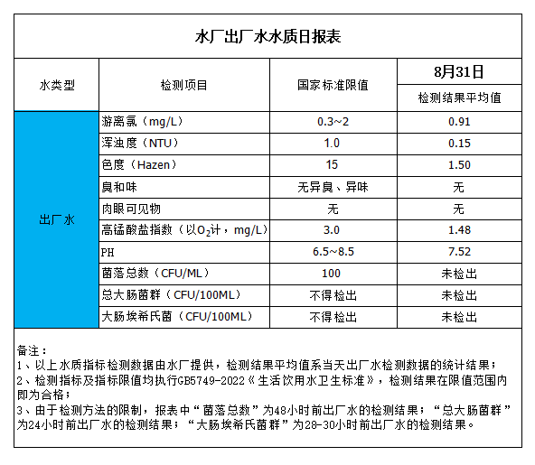 水廠出廠水水質日報表(2023-8-31)